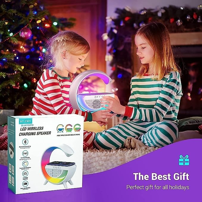 G-Shape LED Lamp - 3 in 1 Multi-Function Bluetooth Speaker with Wireless Fast Charging | RGB Light Table Lamp Wireless Charger for Home Decoration, Bedroom & Gaming.